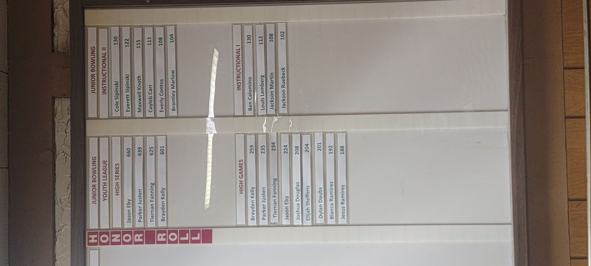 We celebrate our young bowlers who have bowled a scratch game (game with no handicap) in each league by displaying their scores at Metro Bowl and here on the website. Last updated 1/24/2026